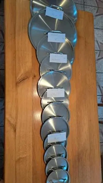 Przykrywka Stalgast o średnicy 17 cm / 16,17 x4 szt po 15,00 w środku , średnica 21cm /19.5 x3szt po 17,00 ,średnica 25,5/23,5 x 2 szt po 30,00 , średnica 38cm/35,5x 2szt po 58,00 1szt ze stali nierdzewnej, stan idealny. Zapraszam do kontaktu.500 272 101