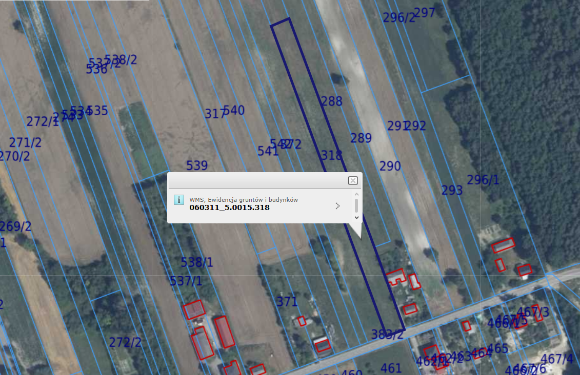 Nieruchomość o numerze ewidencyjnym 318 ma powierzchnię 4460 m².
