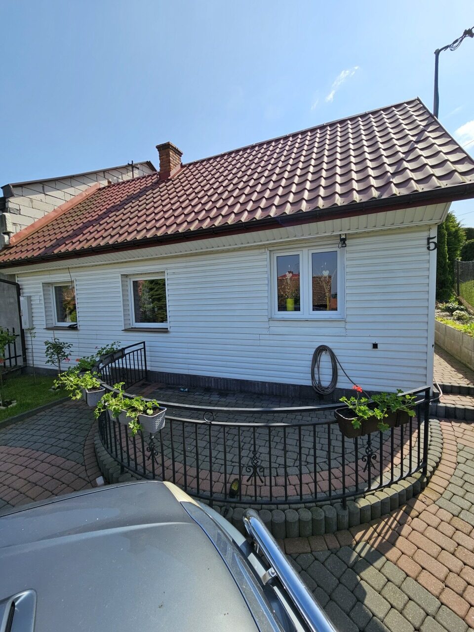 ✅ Przód domu- chodnik wokół, oraz taras z przodu i z tyłu, wybrukowany nowoczesną kostką. Ogrodzenie kute z bramą przesuwną.